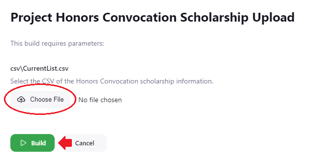 - Upload the scholarship CSV by clicking on the “Choose File” button and selecting the file from your computer.