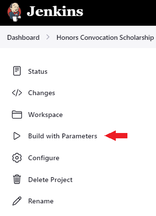 - Click on the “Build with Parameters” icon on the left-hand side of the job window.