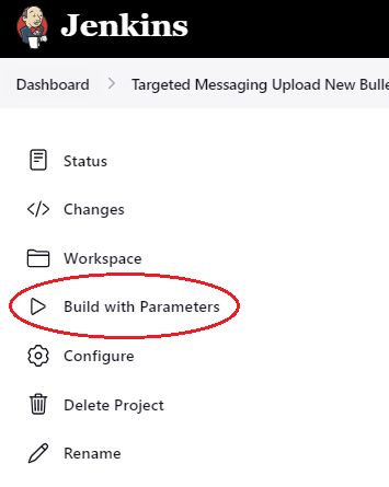 Click on the “Build with Parameters” icon on the left-hand side of the job window.